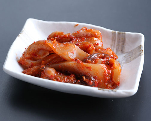 甘辛珍味。コチュジャンやヤンニンで味付けしてあるスルメの惣菜です。どなたからも愛される一品。